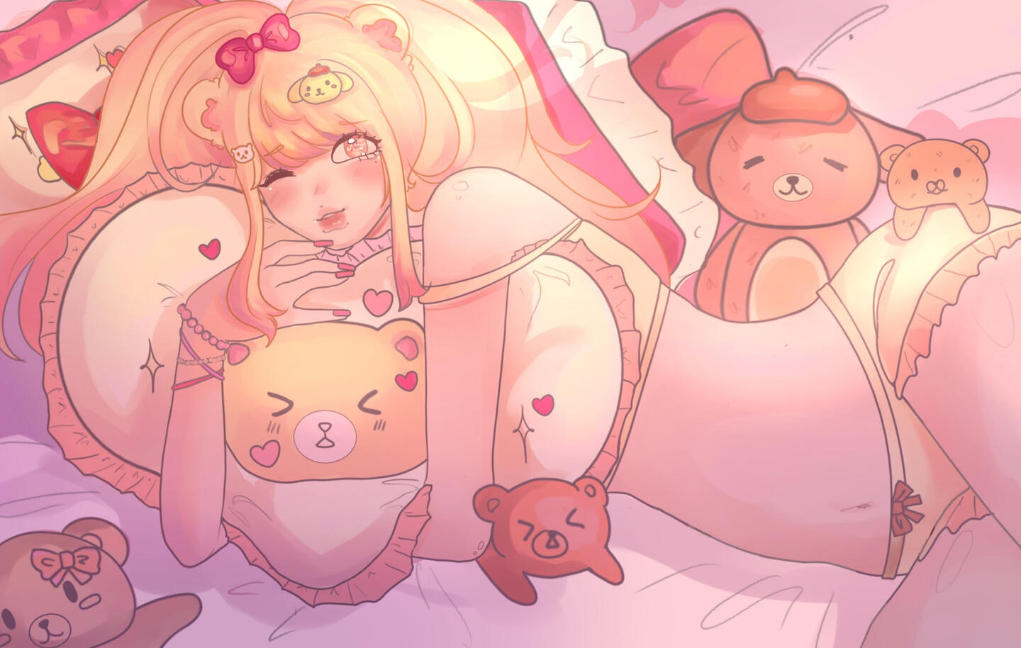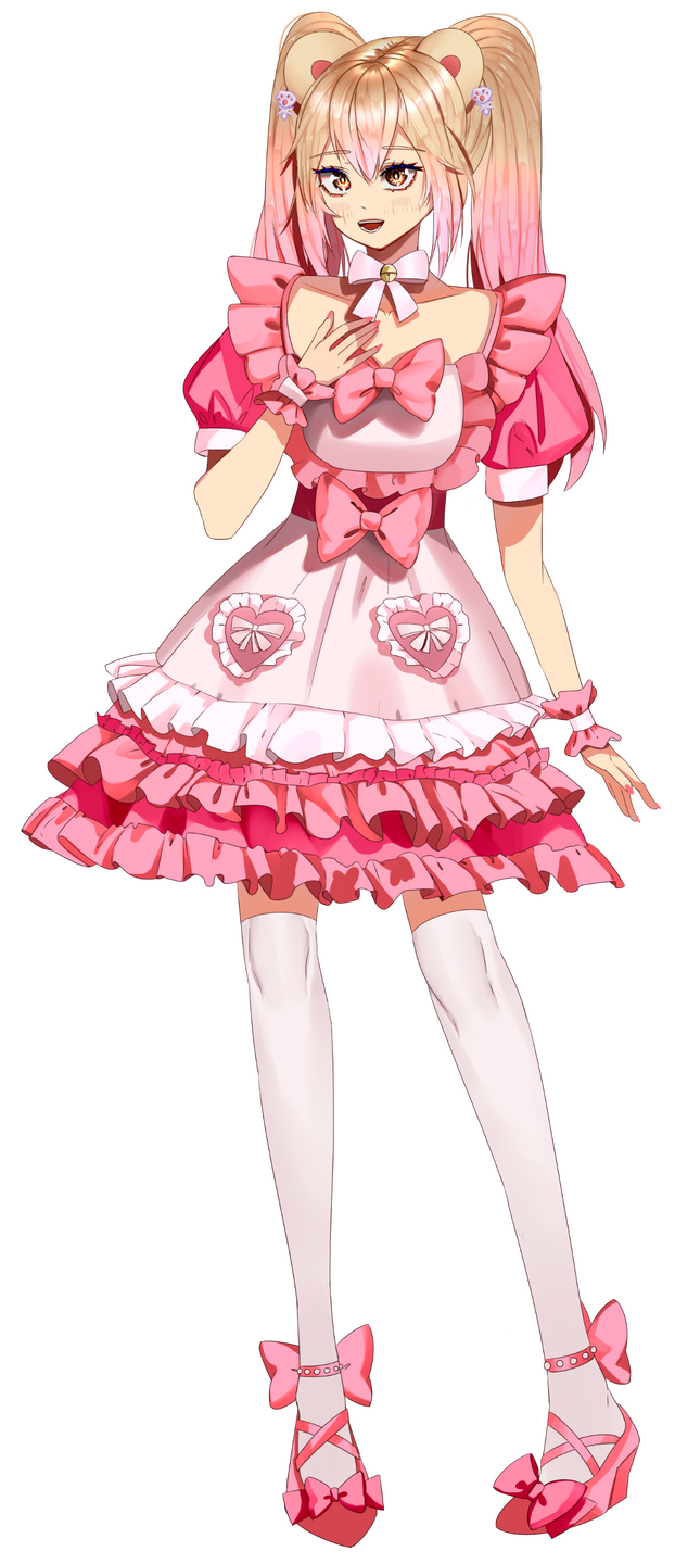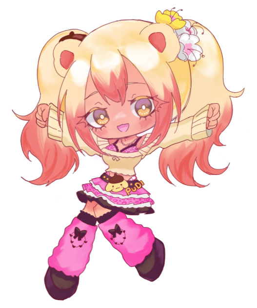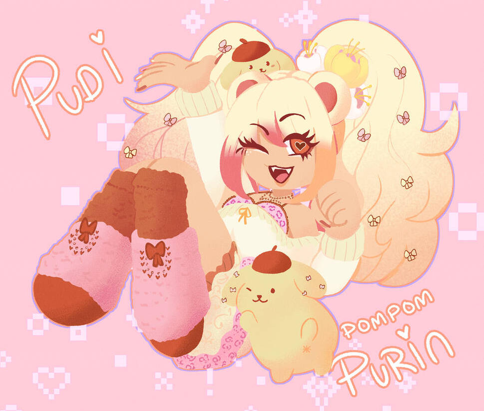 28 Year old American Vtuber, started streaming at the end of March of 2022. Pudi is a Pudding Bear that loves dressing in Gyaru and Lolita fashion as well as comfy hoodies. Can be found at her desk playing games and socializing at the Kuma Klub. ♥