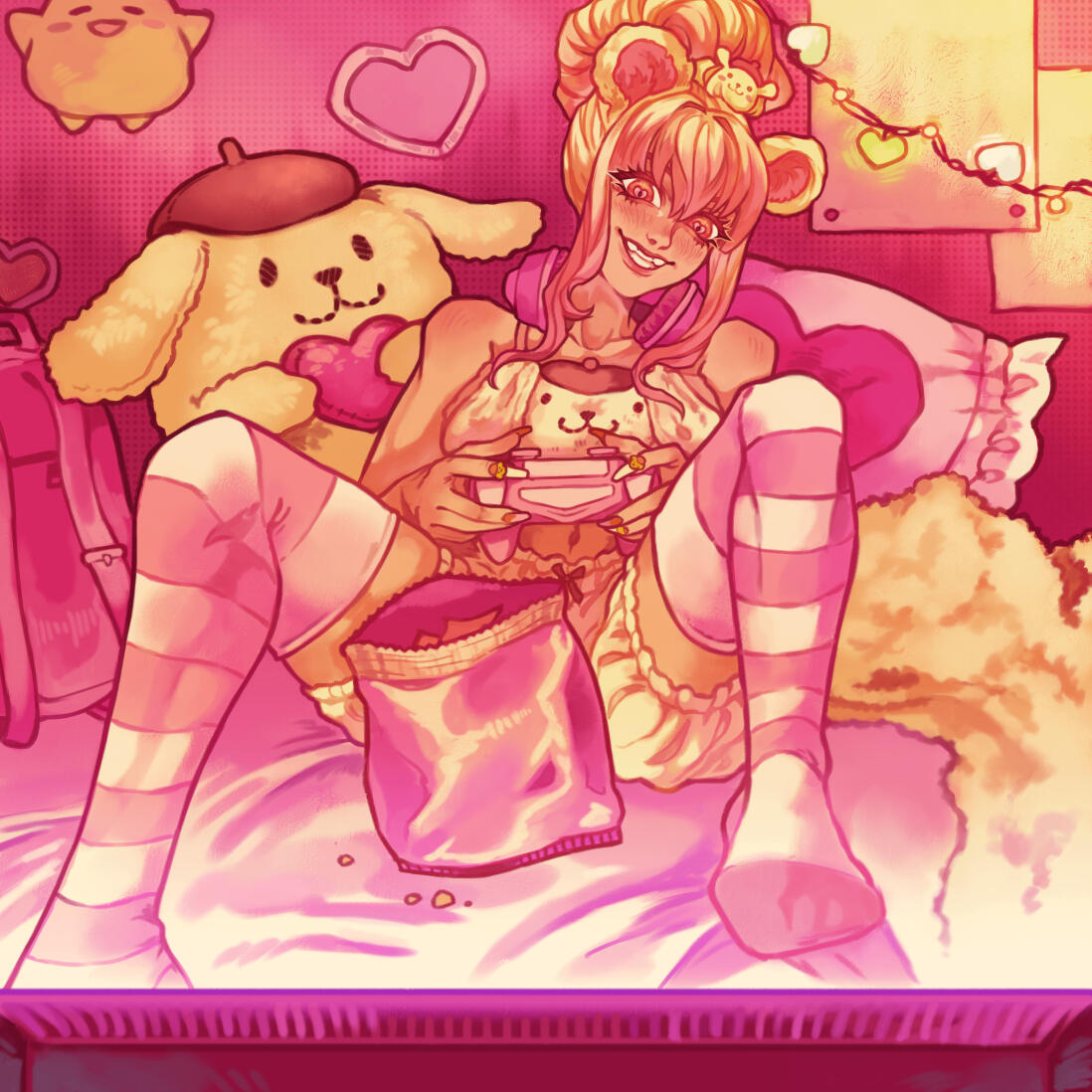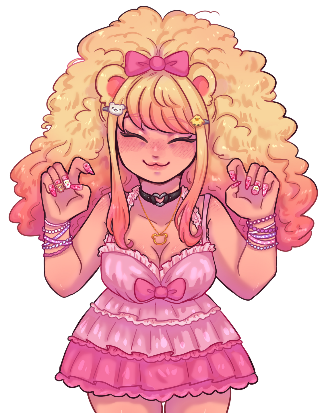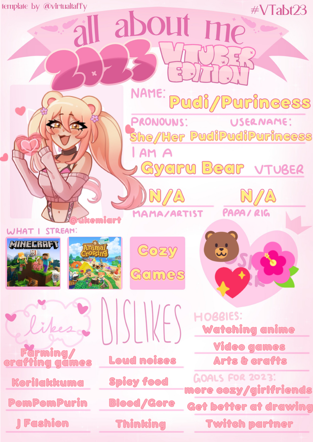 28 Year old American Vtuber, started streaming at the end of March of 2022. Pudi is a Pudding Bear that loves dressing in Gyaru and Lolita fashion as well as comfy hoodies. Can be found at her desk playing games and socializing at the Kuma Klub. ♥
